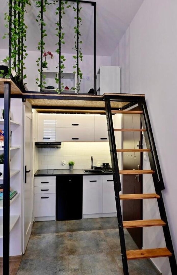 BOOGIE Home Studio to funkcjonalna kawalerka typu studio o powierzchni 24 m², urządzona w nowoczesnym, loftowym stylu. Apartament oferuje wygodne miejsce noclegowe dla 1–4 osób – do dyspozycji Gości jest podwójne łóżko na antresoli, rozkładana sofa w salonie oraz możliwość przygotowania łóżeczka dla dziecka.