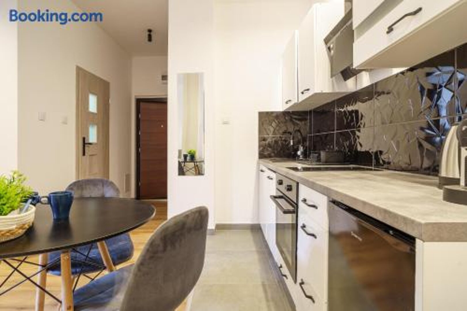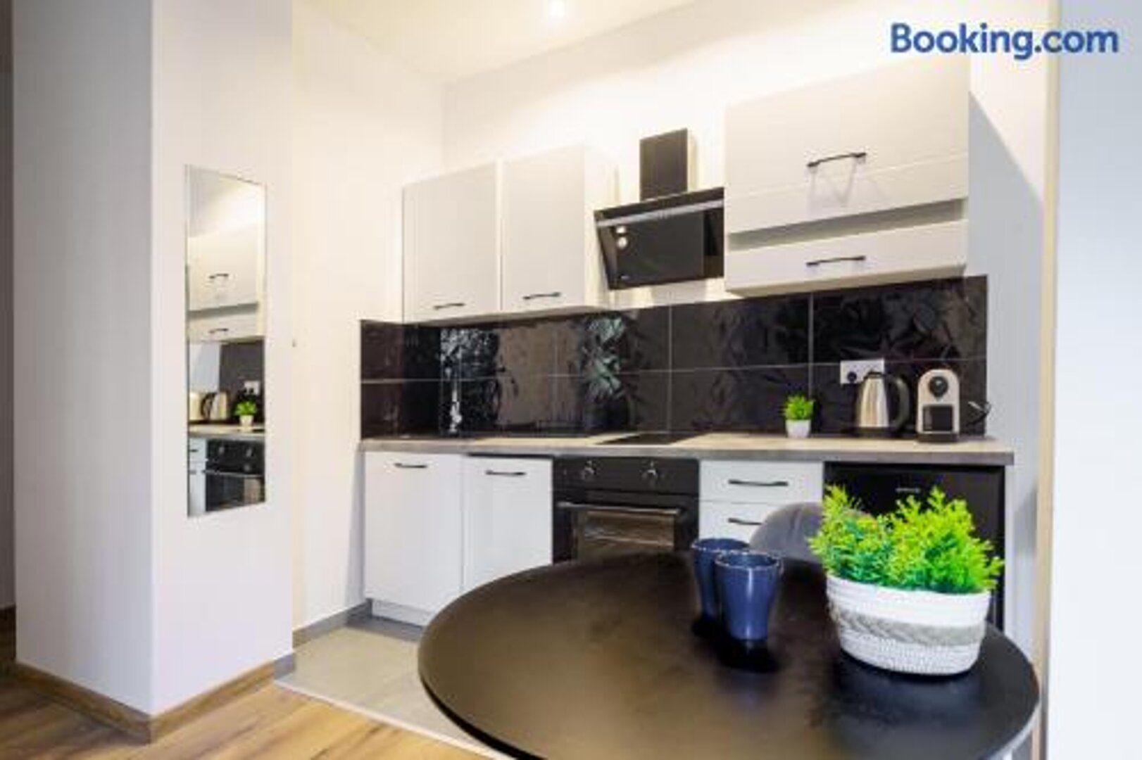 BOOGIE Home Papillon 12 Studio to dwupoziomowy apartament dla 1–4 osób. Stylowe wnętrze w czarno-złotej kolorystyce, komfortowe łóżka i w pełni wyposażony aneks kuchenny gwarantują wygodny pobyt w centrum Łodzi.